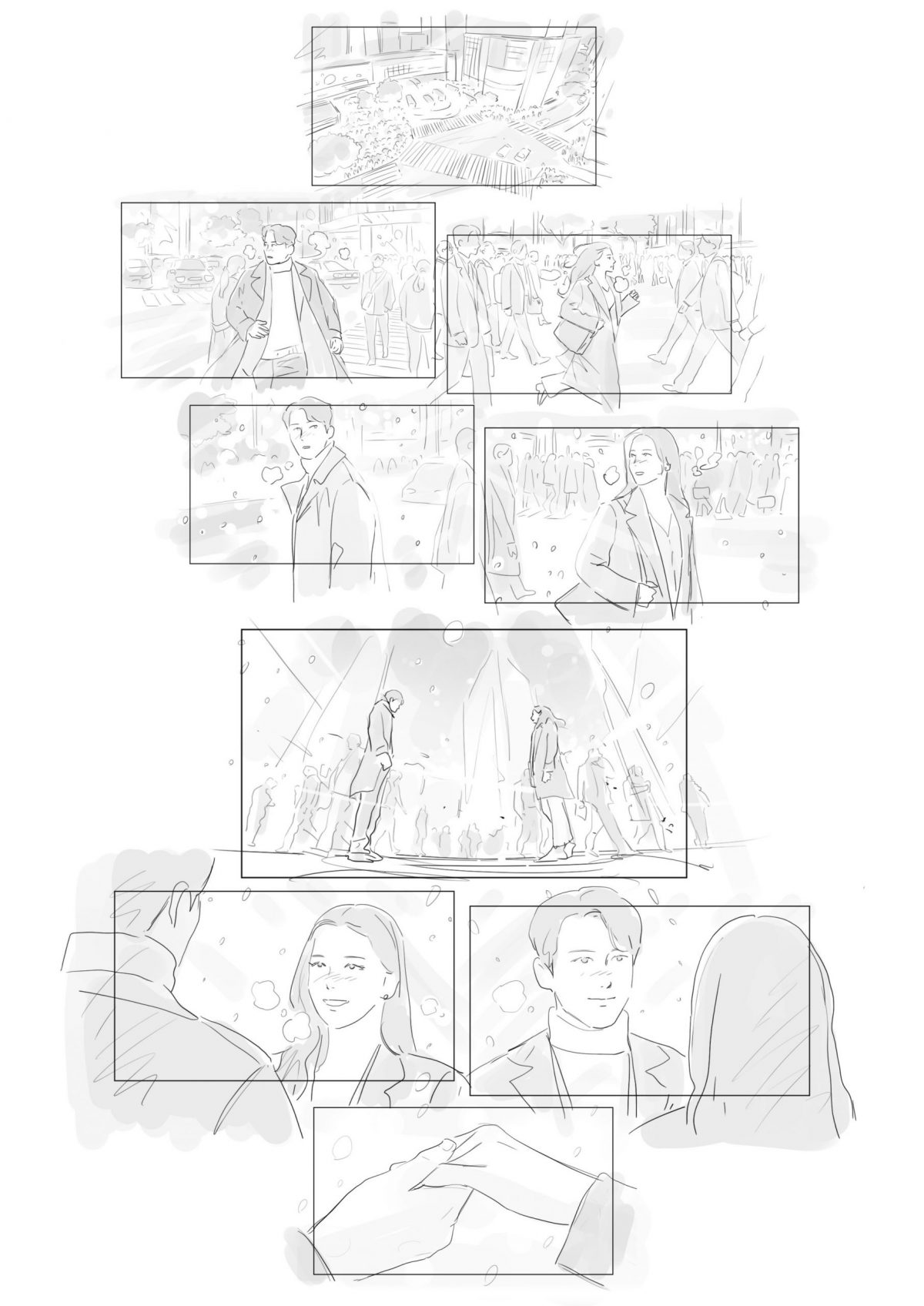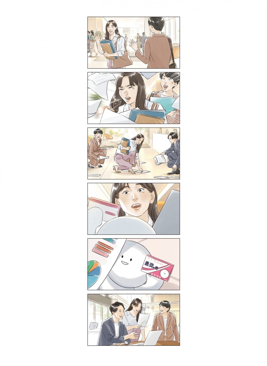 企画の意図を読み取りキーとなるカットを見逃さないことや、内容にあった絵柄で作画することです。全体のトーンの構築なども大切にしております。