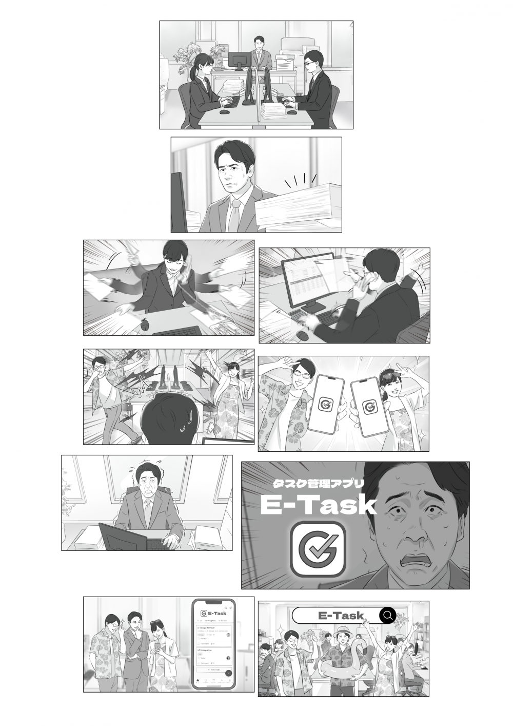 さらにチームで作画することでタッチを揃え、短時間でまとまった案数に対応できます。クライアントの皆さまにただのご満足ではなく、圧倒的なご満足をしていただけるよう努めてまいります。
